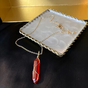 9in chain, 1.5in pendant, Red Quartz Carnelian Crystal necklace, New