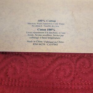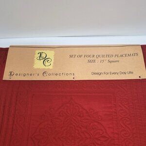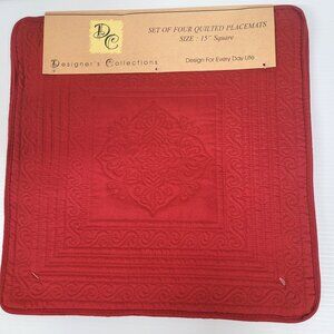 New Designer Collection Set of 4 red quilted placemats. They are 15'' square, 100% cotton, and machine wash and dry.