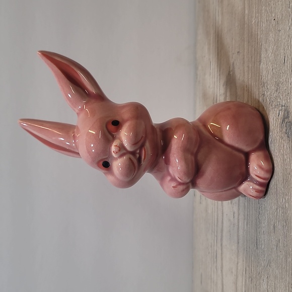 Ceramic red rabbit. Approx. 6 1/2" H, 3" W.