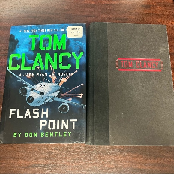 Two books with one with some bad exterior damage. Tom Clancy.