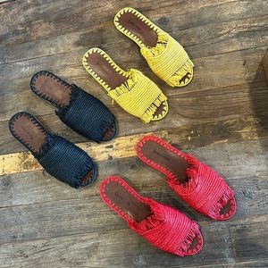 Leather sole with hand stitched detail around the entire edge of the slide.