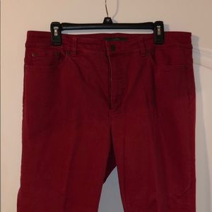 Sz 16 red Ralph Lauren pants. Denim pants with a stretch material. I’m excellent condition. Only worn once. 38 1/2 inches long