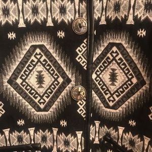 Red Ranch Aztec Jacket. Never worn. Leather trim and decorative buttons. Open cuffs. Hip length. Smoke free home.
