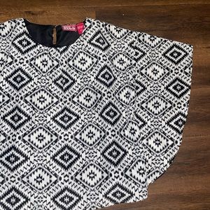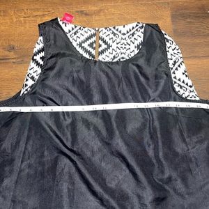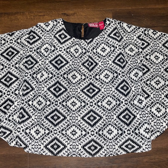 Red Ranch popover cape . Crème and black Aztec style print . Attached lined tank top underneath. Slight split in seam of tank liner. Can be sewn. Size large .
