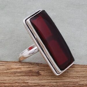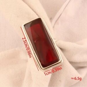 Elegant ring featuring a striking red rectangular gemstone. Perfect for adding a pop of color to any outfit.