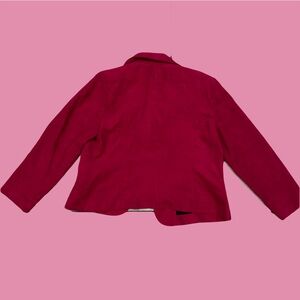 Stylish red velvet button-up jacket with a sleek design. Perfect for any occasion.