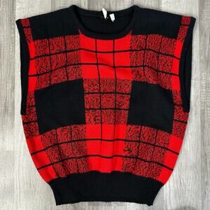 Red Red and Black Plaid Crew Neck Sweater Vest Size Small