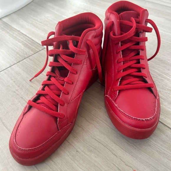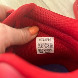 EUC red red Reebok hightops. Fit more like 10.5 IMO. I have other Reeboks that are size 11/euro 42.5 and I feel like these run a tad snug, which is why I must pass them along. Super fun for the holidays!