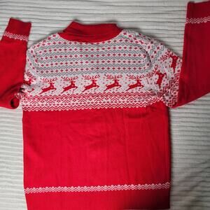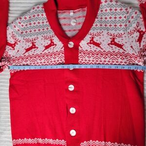 Red Reindeer Christmas Cardigan Sweater NWOT Fair Isle Knit Holiday Sz L