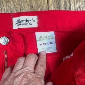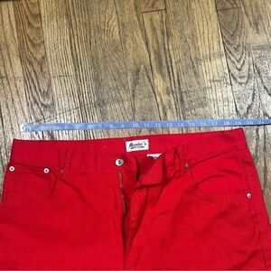 Experience comfort and style with these vibrant red relaxed fit men's jeans. Perfect for casual outings, these jeans offer a bold look and a comfortable fit.