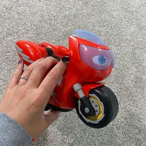 Exciting red remote control motorcycle toy for kids. Features easy-to-use controls for thrilling playtime. Perfect for young racing enthusiasts.