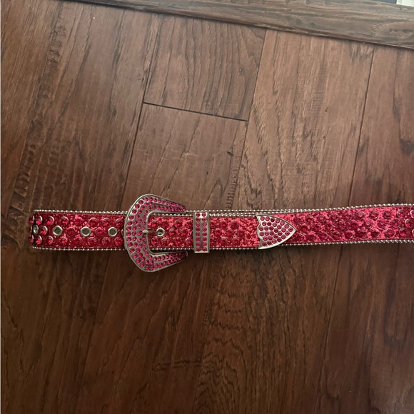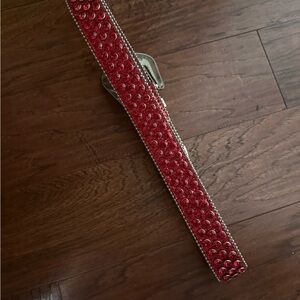 Add a touch of sparkle to your outfit with this stunning red rhinestone belt. Perfect for elevating any look.