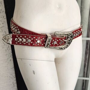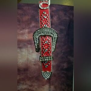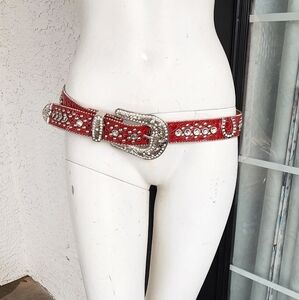 Red Rhinestone Belt with Horseshoe Rhinestone