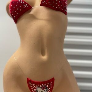 Red Rhinestone Bikini Set
