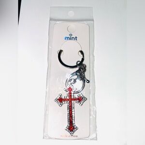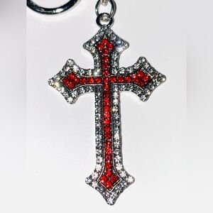 New in package. Red Rhinestone Cross Keychain. 2”. Silvertone.