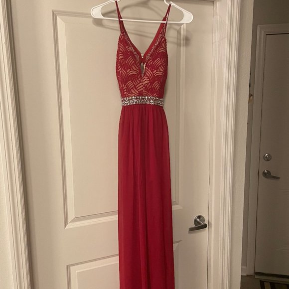 Red Rhinestone Dress size XS long in length for Prom or Wedding