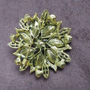 Elegant brooch with vibrant red rhinestones in a floral design. Perfect for adding a touch of glamour.
