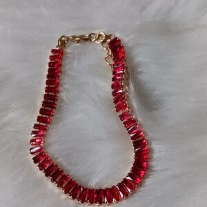 Red Rhinestone Gold Chain Bracelet
