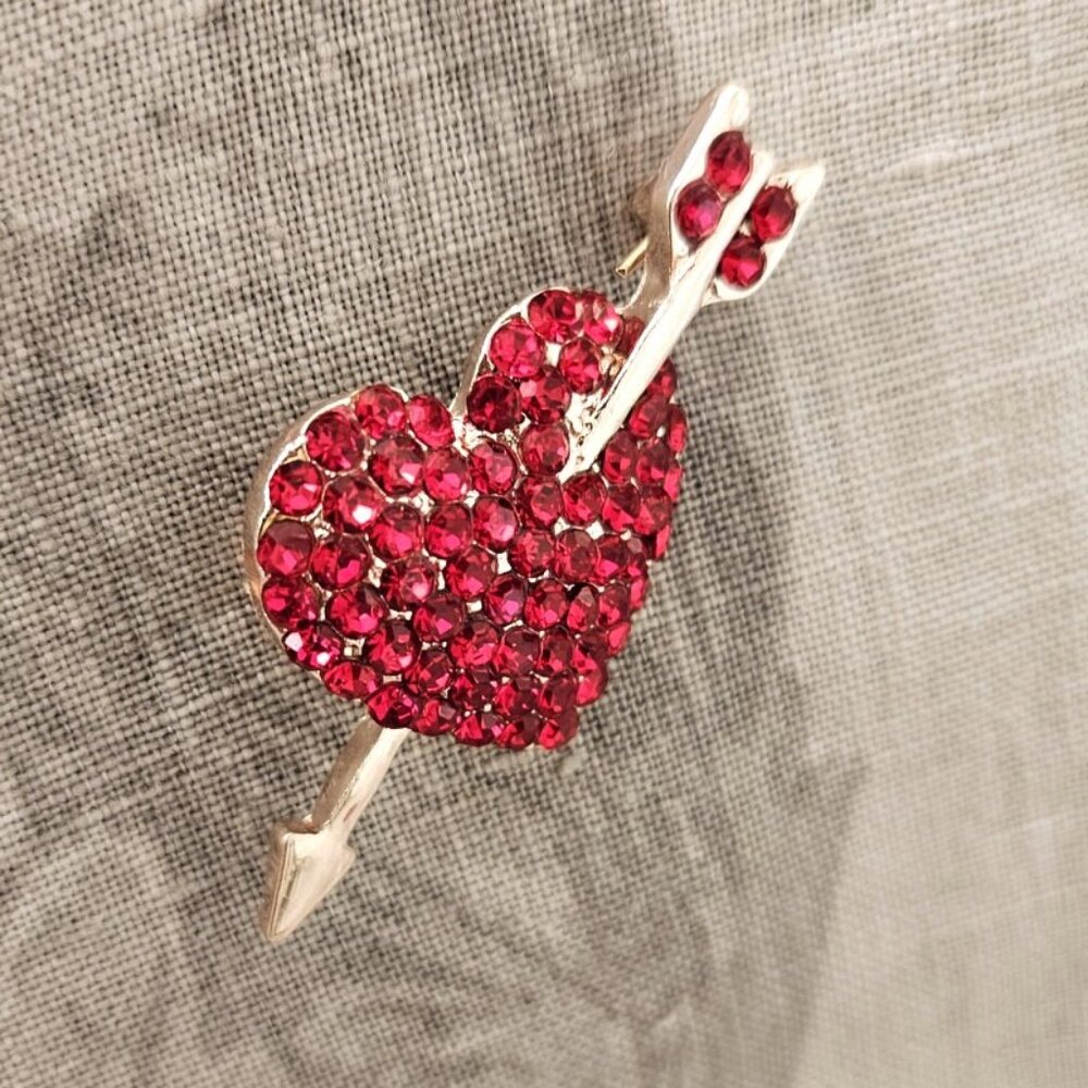 Red Rhinestone Heart & Arrow Pin