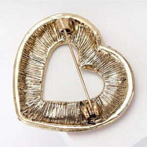 A stylish brooch featuring vibrant red rhinestones and a gold-tone heart design. Lightweight and elegant, it enhances any outfit effortlessly.