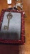 Stylish keychain lanyard with red rhinestones. Features a decorative key design.