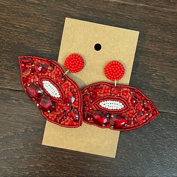 Red Rhinestone Lippy Earrings