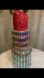 Dazzling red rhinestone lipstick ornament with iridescent accents. Perfect for adding sparkle to any decor.