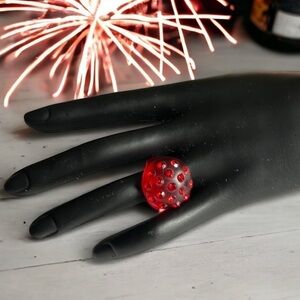 This sparkly red lucite ring with red rhinestones gives off a fun, party vibe as soon as you put it on!