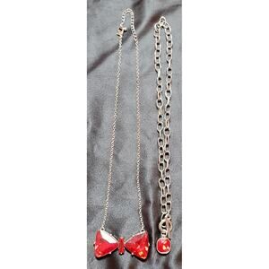 Red Rhinestone Necklace Earrings Lot Bowtie Silver Chain Toggle Clasp Glam Y2K