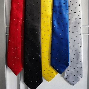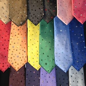 Bespoke, glossy, satin neckties hand-finished with Swarovski and Preciosa crystal rhinestones for extra sparkle. These neckties are comfortable to wear and to touch. The material is a fine jacquard woven microfiber which is animal friendly, with a silky smooth texture that's both soft and thick. Necktie Size: 58''x 3.35''.