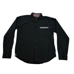 Red Rhino Shirt Mens Medium M Black Gray Geometric Button Up Long Sleeve