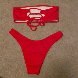 Red Ribbed Bikini
