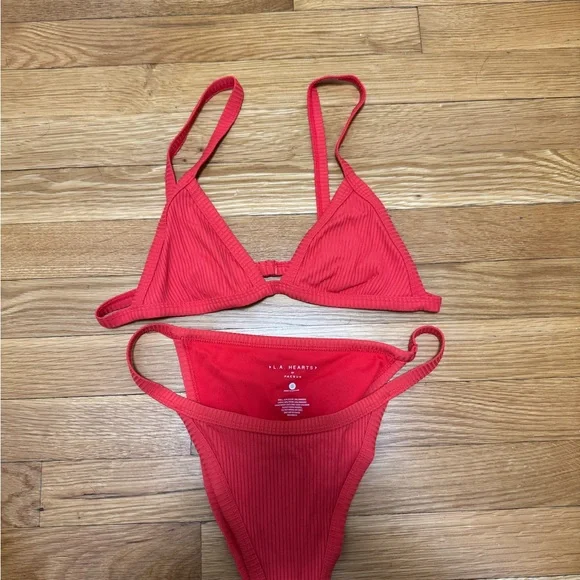 Stylish red ribbed bikini set. Perfect for beach days and Fourth of July. Worn once, like new