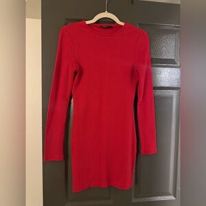 Red ribbed bodycon dress