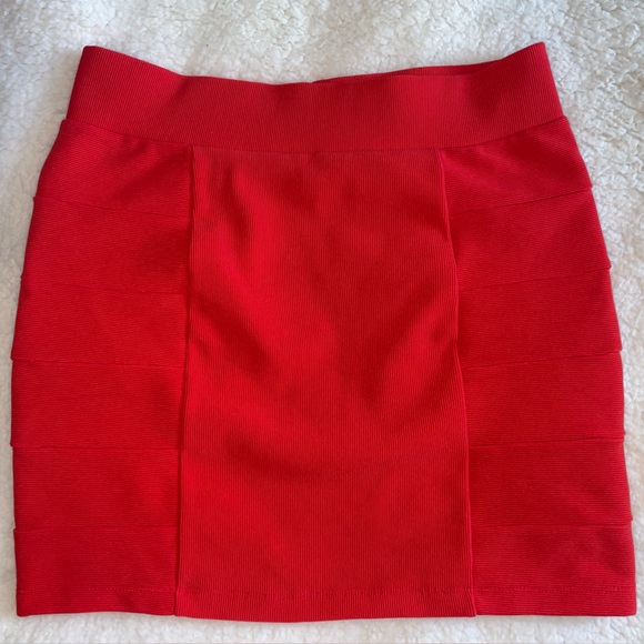 Red Ribbed Bodycon Mini Skirt