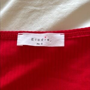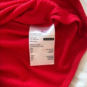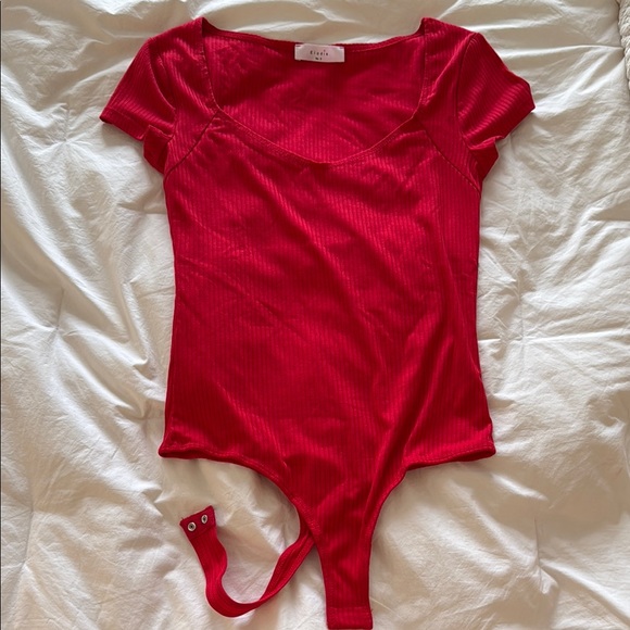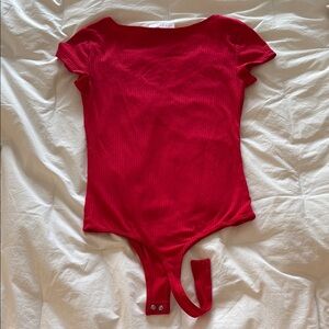 Stylish red ribbed bodysuit with snap closure. Perfect for any occasion. Worn once or twice. Color most consistent with last 2 pictures