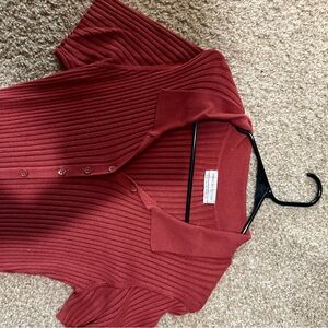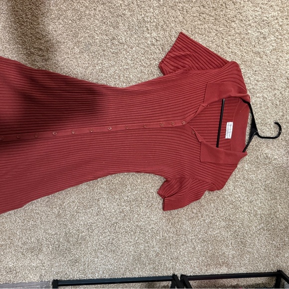 Red Ribbed Button-Down Dress