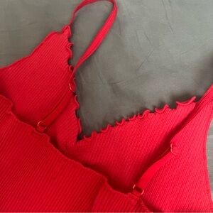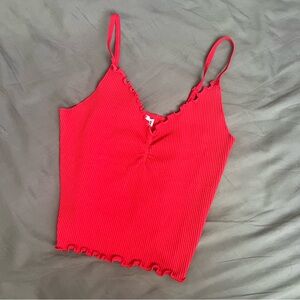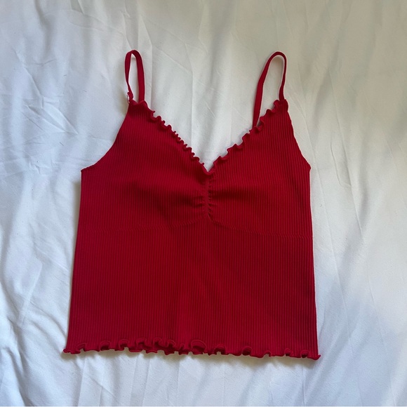 Red Crop Top with ruffle detailing Comes with adjustable straps Size tagged Medium