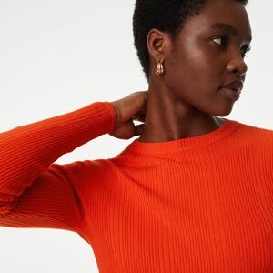 This knitted top is crafted with a ribbed texture for a cosy feel. It’s designed in a sleek fitted shape, making it ideal for layering. The piece is complete with a flattering crew neckline and warm long sleeves. M&S Collection: easy-to-wear wardrobe staples that combine classic and contemporary styles.