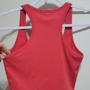 NWOT new without tag. This is a basic red ribbed crop tank top. Fits like a glove! Excellent staple to have in your closet. Mix and match for a veriety of looks.