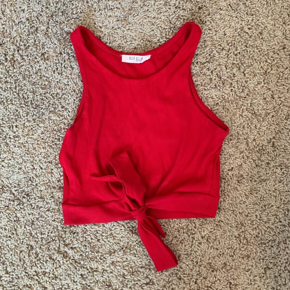 Red robbed crop top with an adjustable tie in the front!