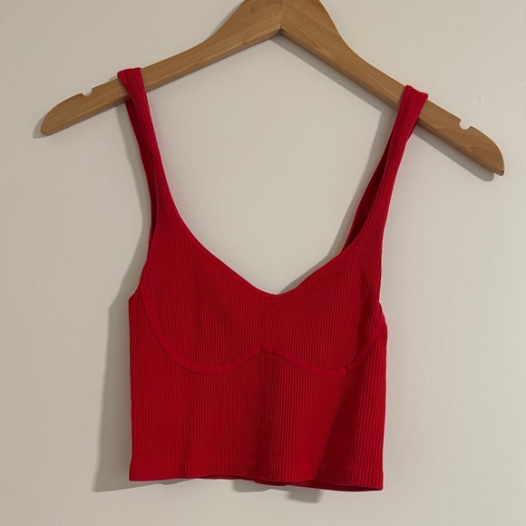 Stylish red ribbed crop top perfect for any casual outing. Comfortable and trendy, this top is a must-have in your wardrobe.