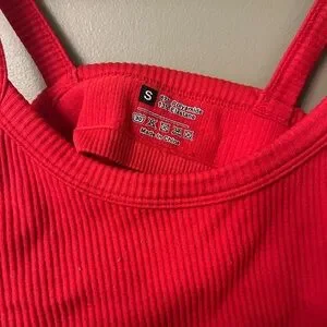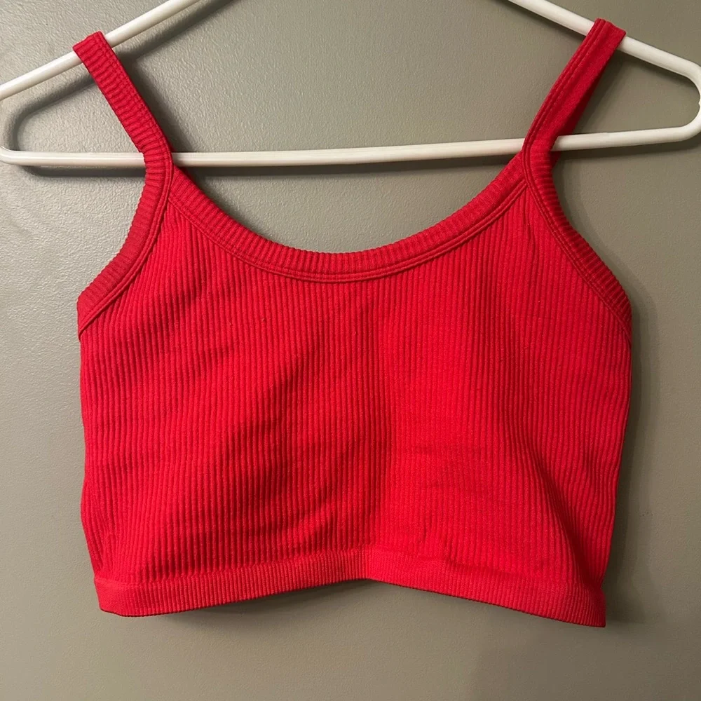 Vibrant red ribbed crop top with spaghetti straps. Stretchy ribbed material!