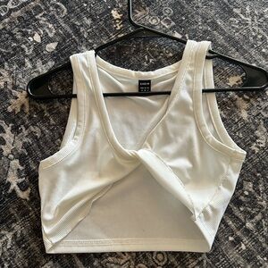 Stylish red ribbed crop top with a twist front design. Perfect for casual outings.