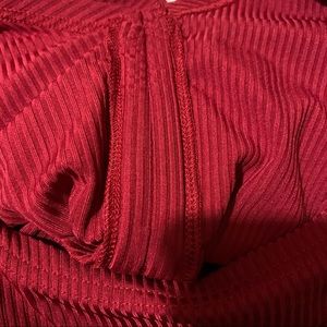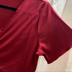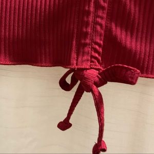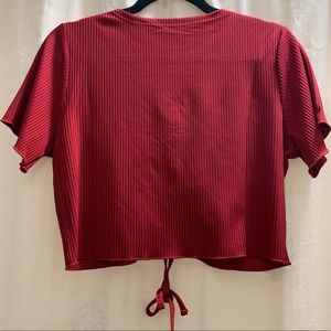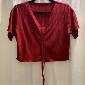 Red Ribbed Cropped Drawstring-Tie Ruched-Front Top