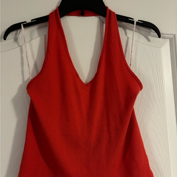 Red Ribbed Halter Top