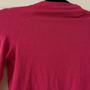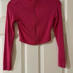 Stylish Pink ribbed knit zip up. Perfect for any occasion. Corset style cut