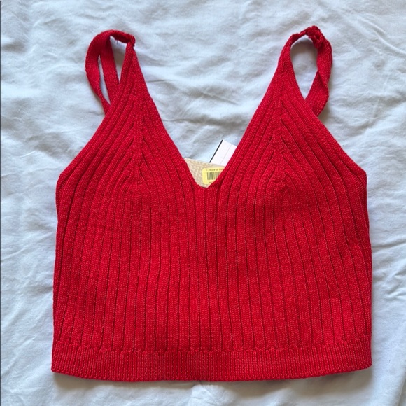 This stylish red ribbed knit top is perfect for any occasion. Its vibrant color adds a pop to your wardrobe.