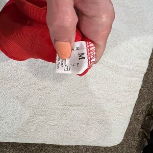 Brighten up your wardrobe with this vibrant red ribbed one piece. Perfect for any occasion, this stylish piece offers comfort and flair, used once.
