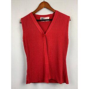 Red Ribbed Sleeveless V-Neck Sweater Vest By M.B. Clothing Medium 100% Cotton